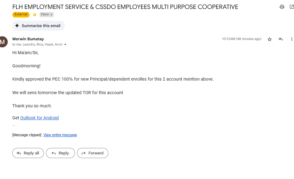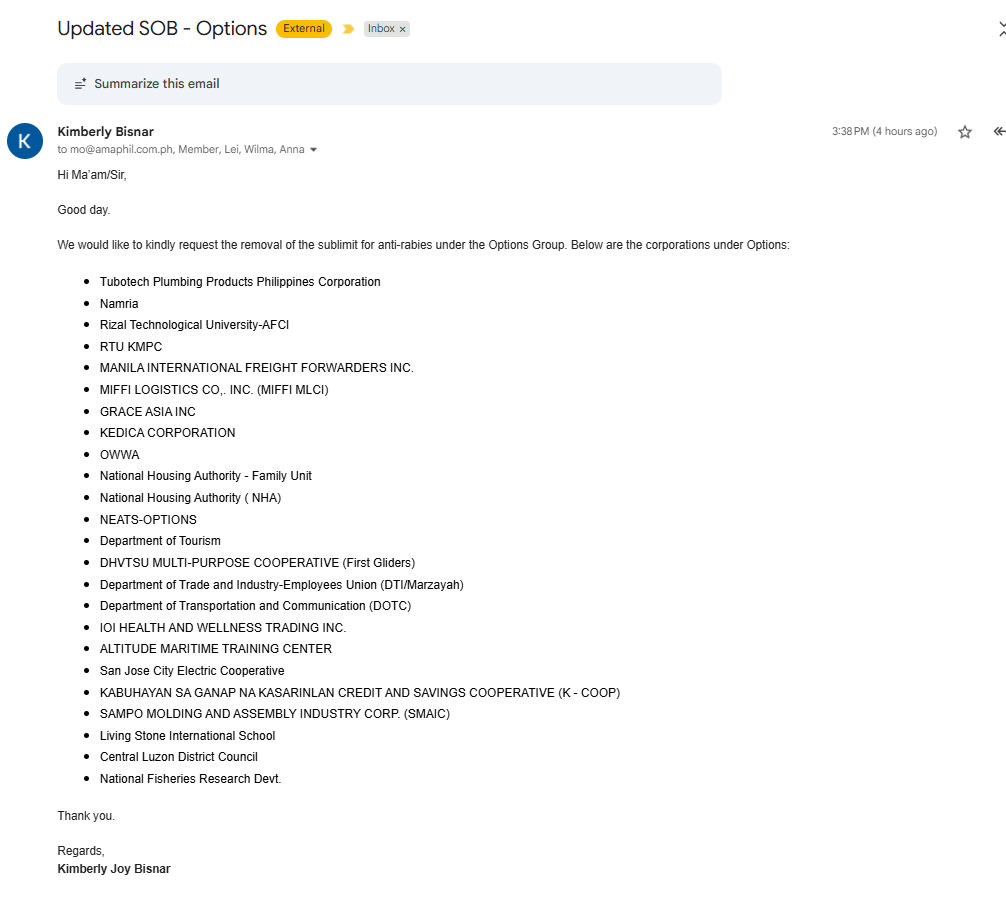 - All approval requests with amount of Php15,000 and above is required to seek approval first of the Polaris team before we can issue LOA.